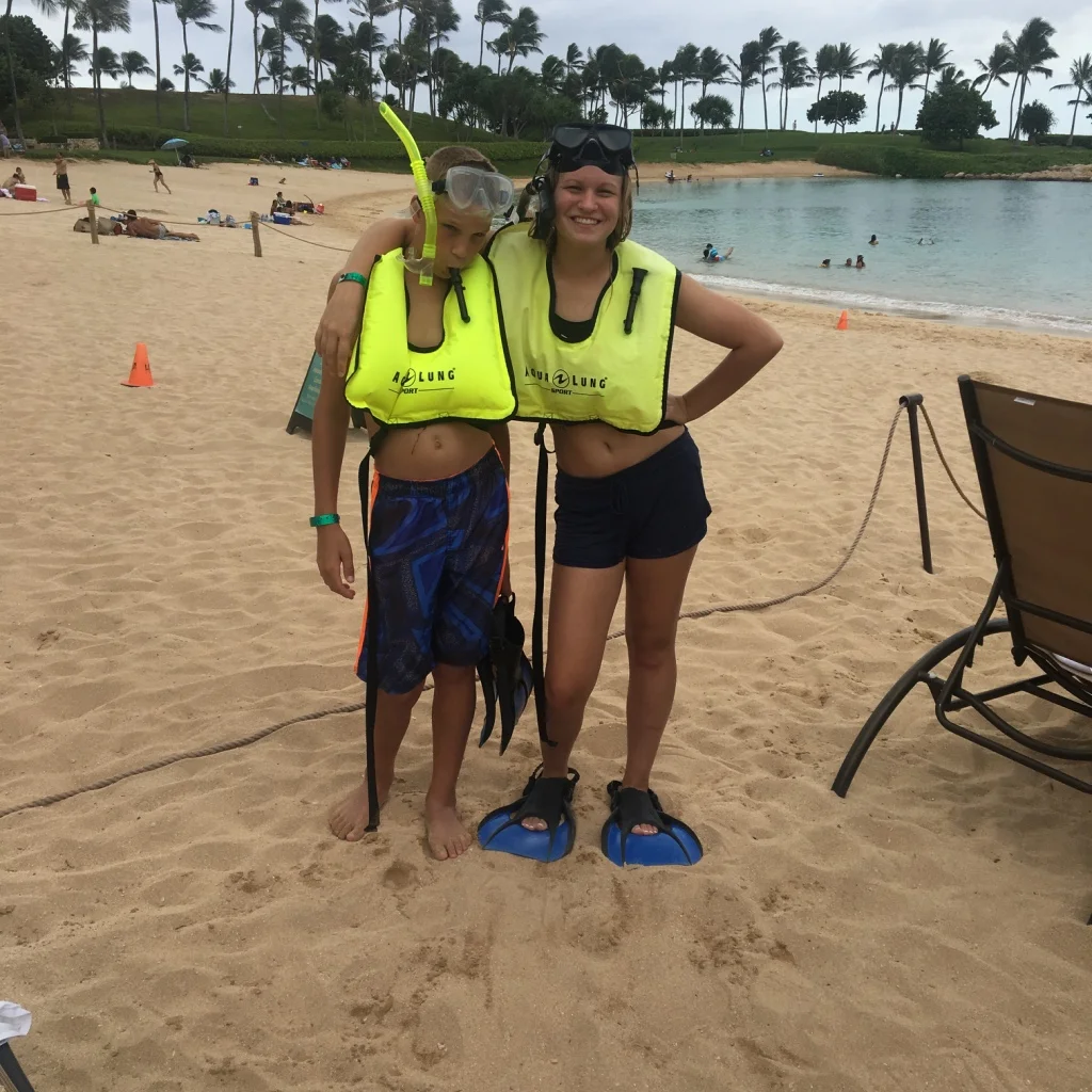 This is one of our Meadows Magical Moments with Mickey. Every single day we hit Makiki Joe's Beach Rentals to grab either snorkeling gear and/or boogie boards. Brandon and I pull our beach seats up to the water and watch our kids boogie to their hearts content. And snorkeling. It’s an activity for nearly all ages. In fact, on our 2012 trip, Brandon and I were snorkeling with all four of the kids. It may not seem like a big moment, but the year earlier we had made the decision and commitment to close the bearing babies chapter for our family. It was what we knew was right for us, but still hard to be officially done. Our youngest, Gavin, was three years-old when we visited Aulani the first time. And our snorkeling adventure, even though his was more like a floating adventure, was the first time ever that we, on a family vacation, were all doing the same thing as a family. All the years before, one of us sat back with the baby, whichever one was a baby at the time. Our Aulani Snorkeling moment was sweet confirmation that we were right where we were supposed to be in our family. So go check it out; but be prepared for the most unexpected epiphanies to hit you! Boogie boards, life jackets and even sand toys are complimentary. Snorkel Sets and paddle boards are rented on a per day fee, with the option to pay for your entire trip at a discounted rate.
